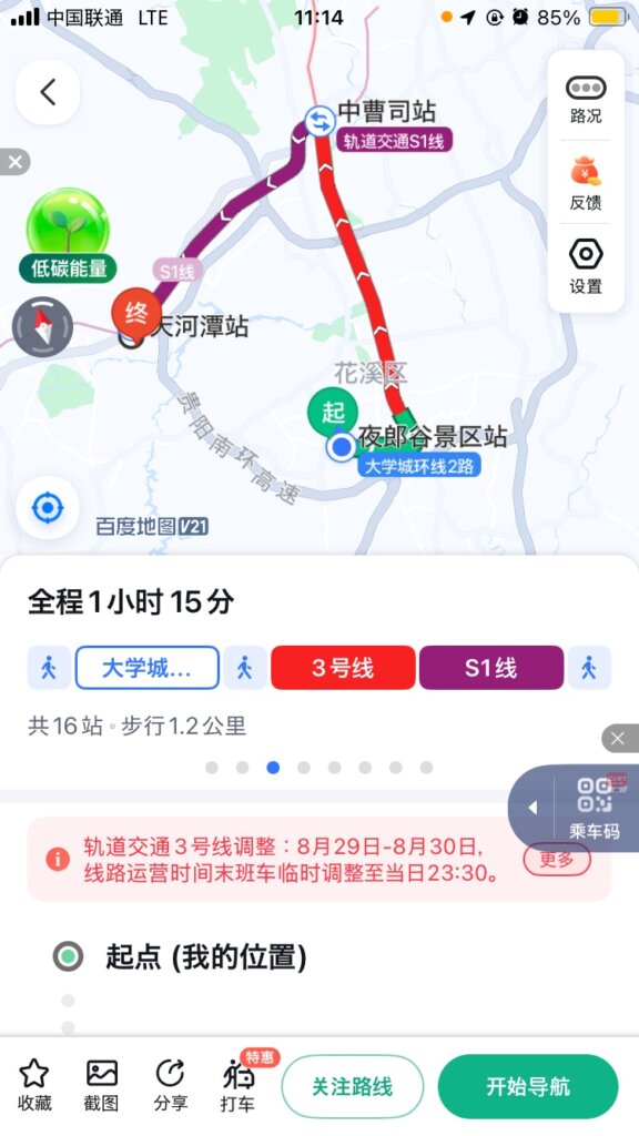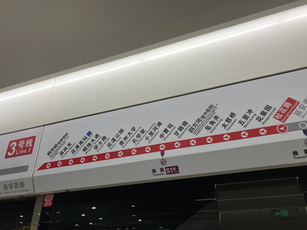 夜谷郎からバスで3号線の地下鉄駅に。その後、地下鉄3号線とS1線を乗り継いで天河潭に行きましょう。