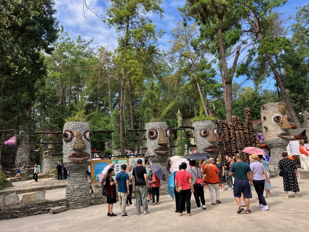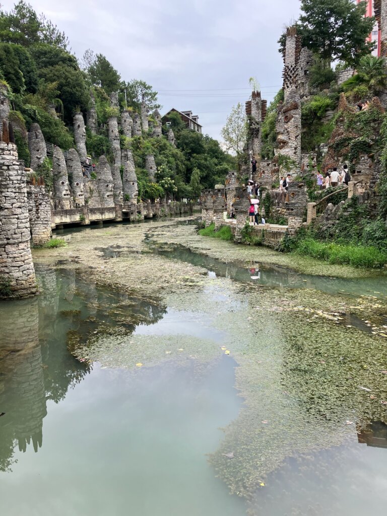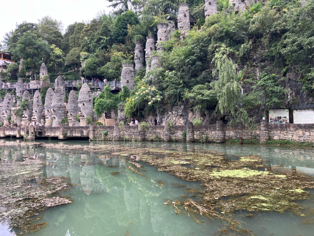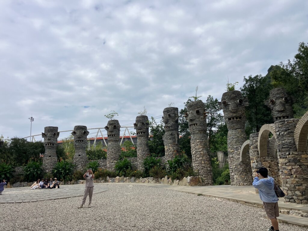 夜郎谷:石灰岩のカルスト地形を生かした渓谷。貴陽のアーティスト・宋さんが30年以上かけて石像や壁画、トーテム風の彫刻を作り上げた場所とのこと。