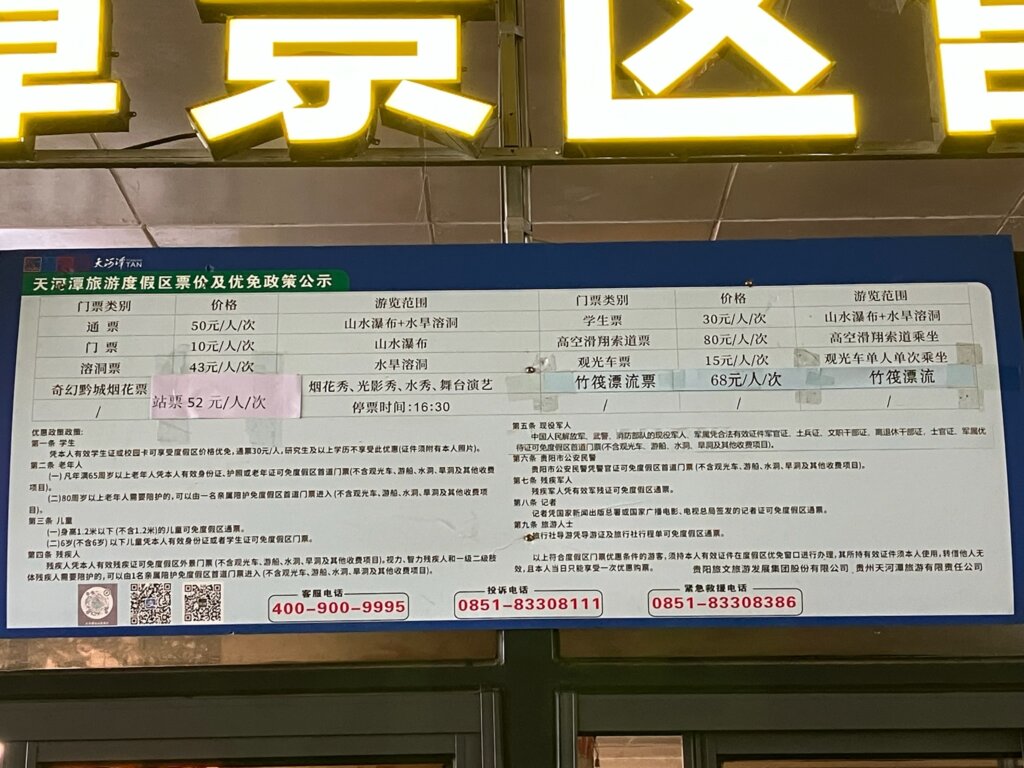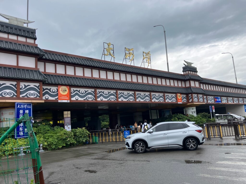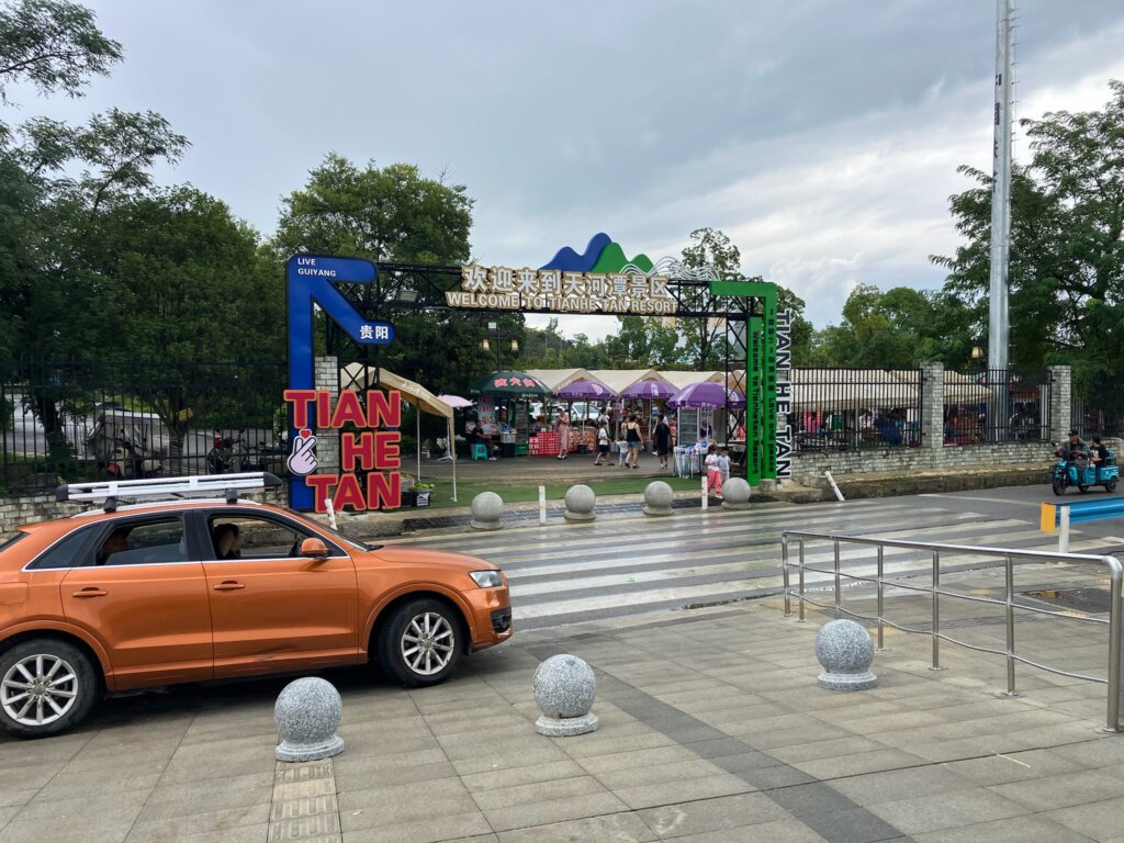さて、天河潭駅を降りると、景区の看板があります。