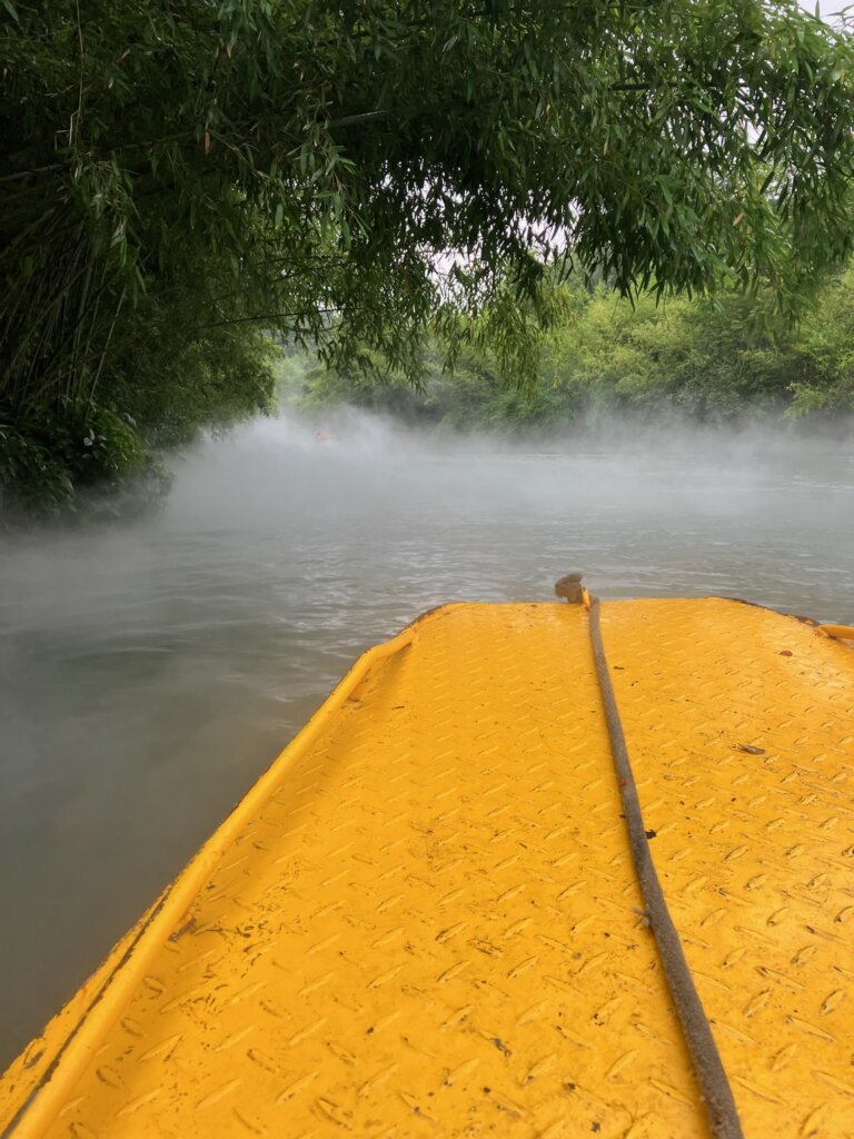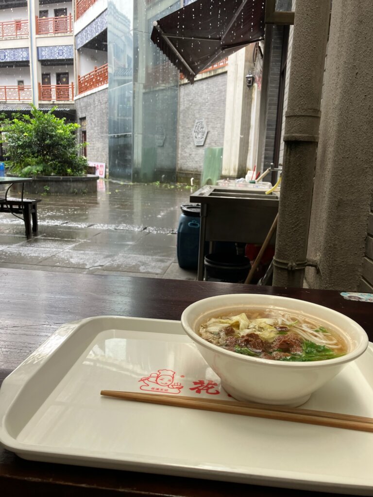 天河潭内で雨音を聞きながら牛肉粉のランチ
