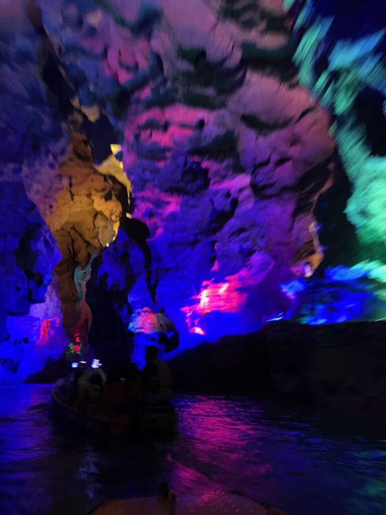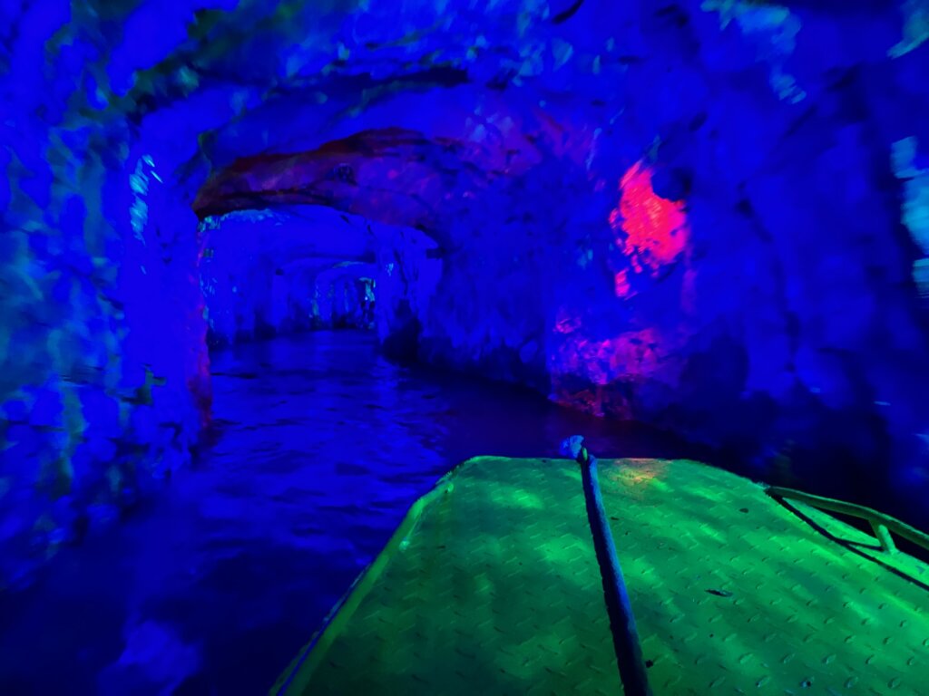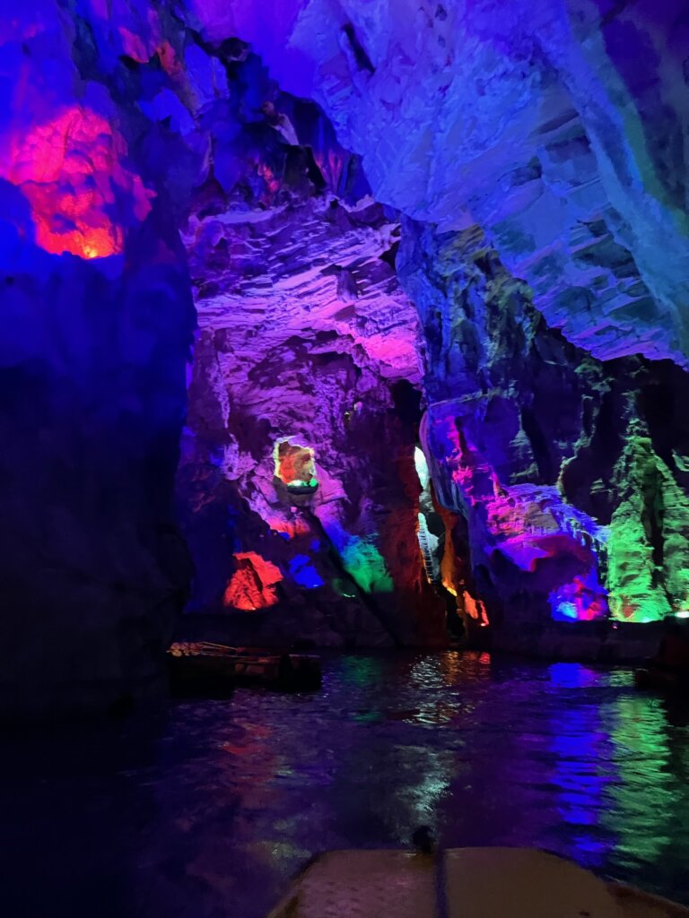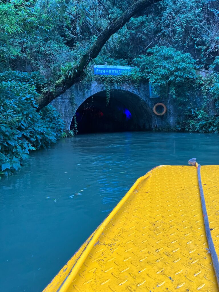 鍾乳洞の中を船に乗る