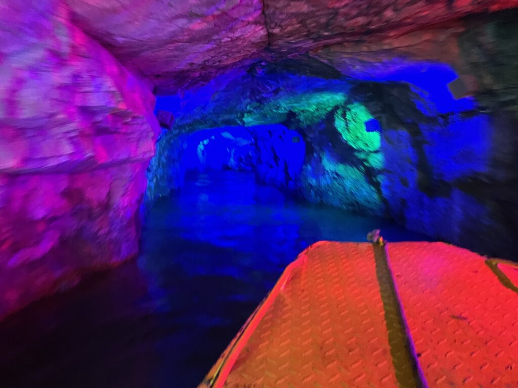 絶景!鍾乳洞の中を船が進みます。