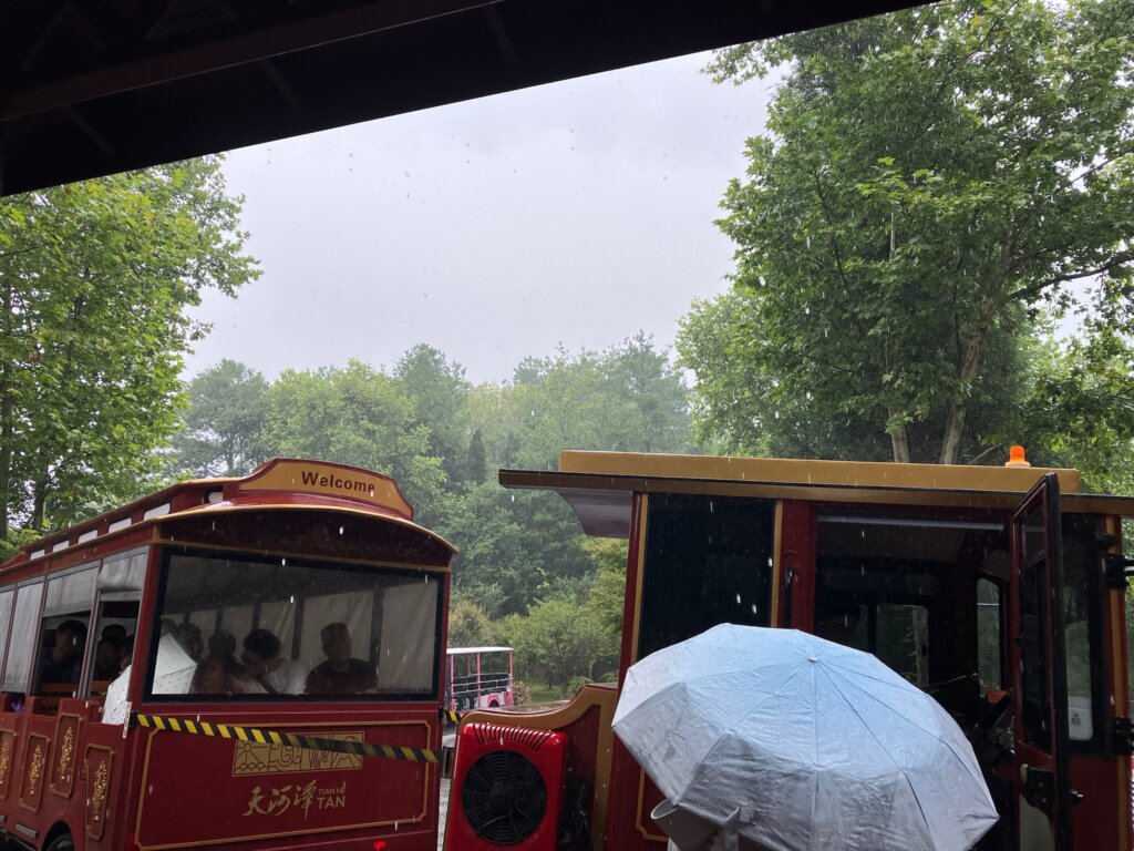 さすがに雨足が強く、観光バスで天河潭の入口に戻ります。