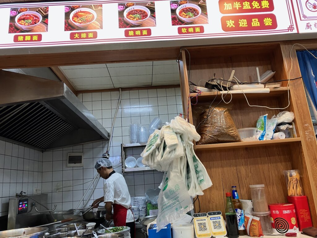 今日の夕食は貴陽の名物麺の肠旺面です。