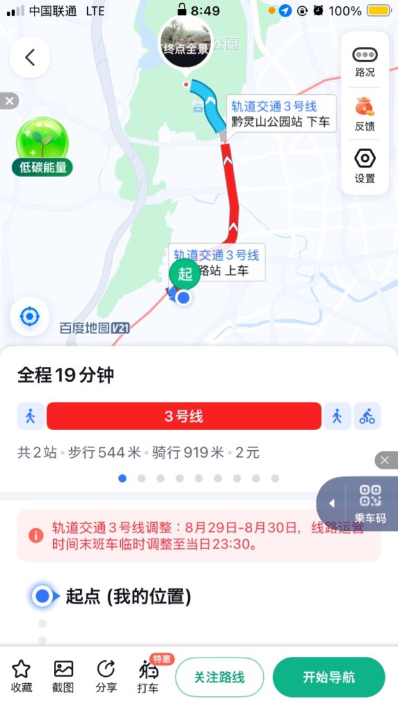 松花路駅からなので、3号線で黔灵山公園駅に行きます。