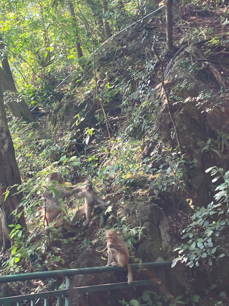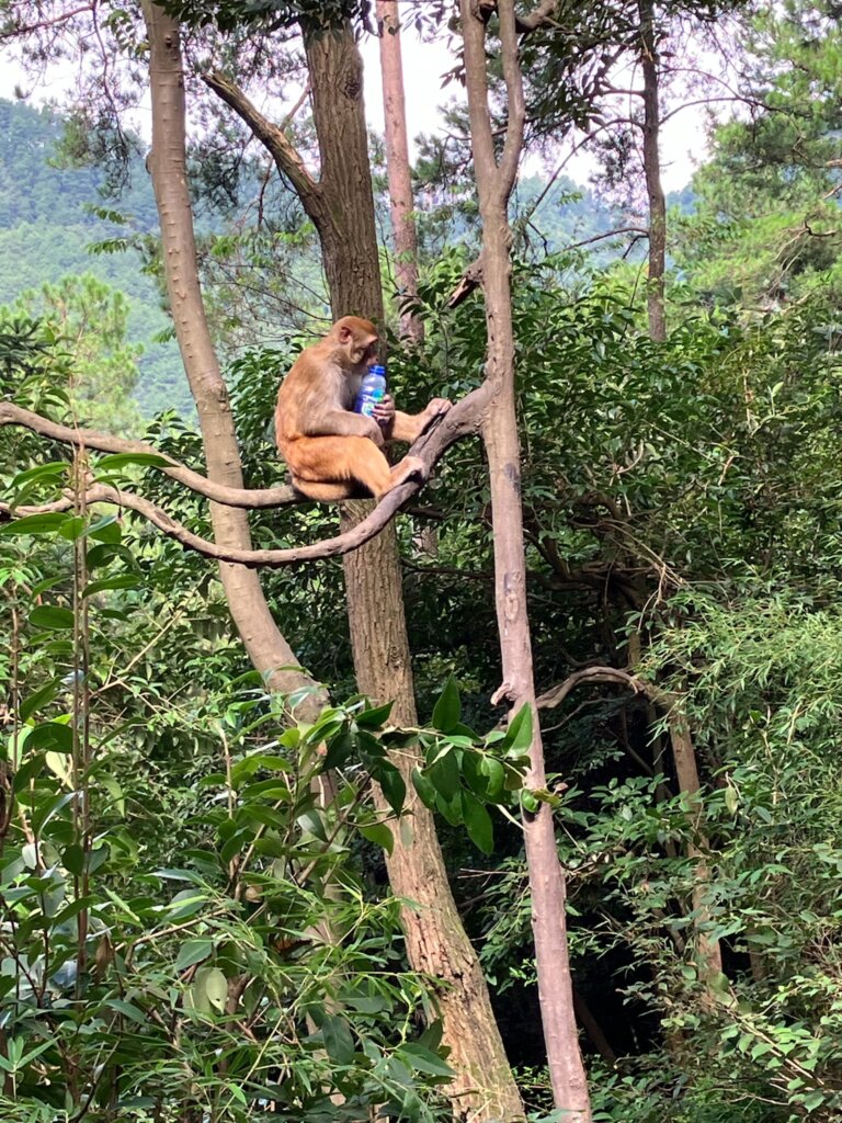 猿もたくさんいます。ペットボトルから水を飲んでいて、すごい(笑)